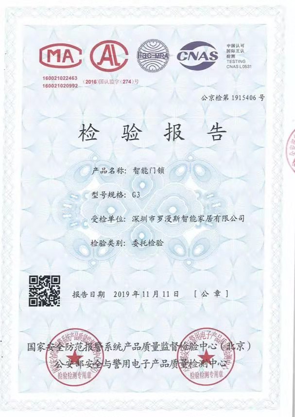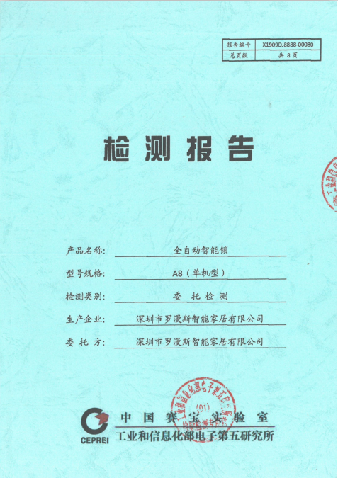 近日,羅曼斯的A8全自動智能鎖和新品G3智能門鎖嚴格按照相關(guān)規(guī)定和要求,分別通過了中國賽寶實驗室檢測認證、公安部安全與警用電子產(chǎn)品質(zhì)量檢測中心&國家安全防范報警系統(tǒng)產(chǎn)品質(zhì)量監(jiān)督檢驗中心認證。