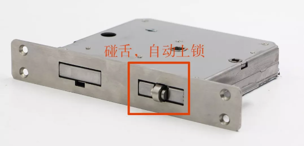 ? ? ? ?這種鎖體類(lèi)似于王力的鎖舌自彈鎖體,在鎖體上有一個(gè)反鎖觸發(fā)裝置(如下圖),關(guān)門(mén)時(shí)只要碰舌與門(mén)觸碰,主鎖舌便會(huì)自動(dòng)彈出,最終達(dá)到自動(dòng)上鎖的目的。但嚴(yán)格意義上講,這種智能鎖只能算是狹義上的“全自動(dòng)智能鎖”,因?yàn)殚_(kāi)門(mén)時(shí)驗(yàn)證指紋之后還需下壓把手方能開(kāi)門(mén),并未做到真正的全自動(dòng)。